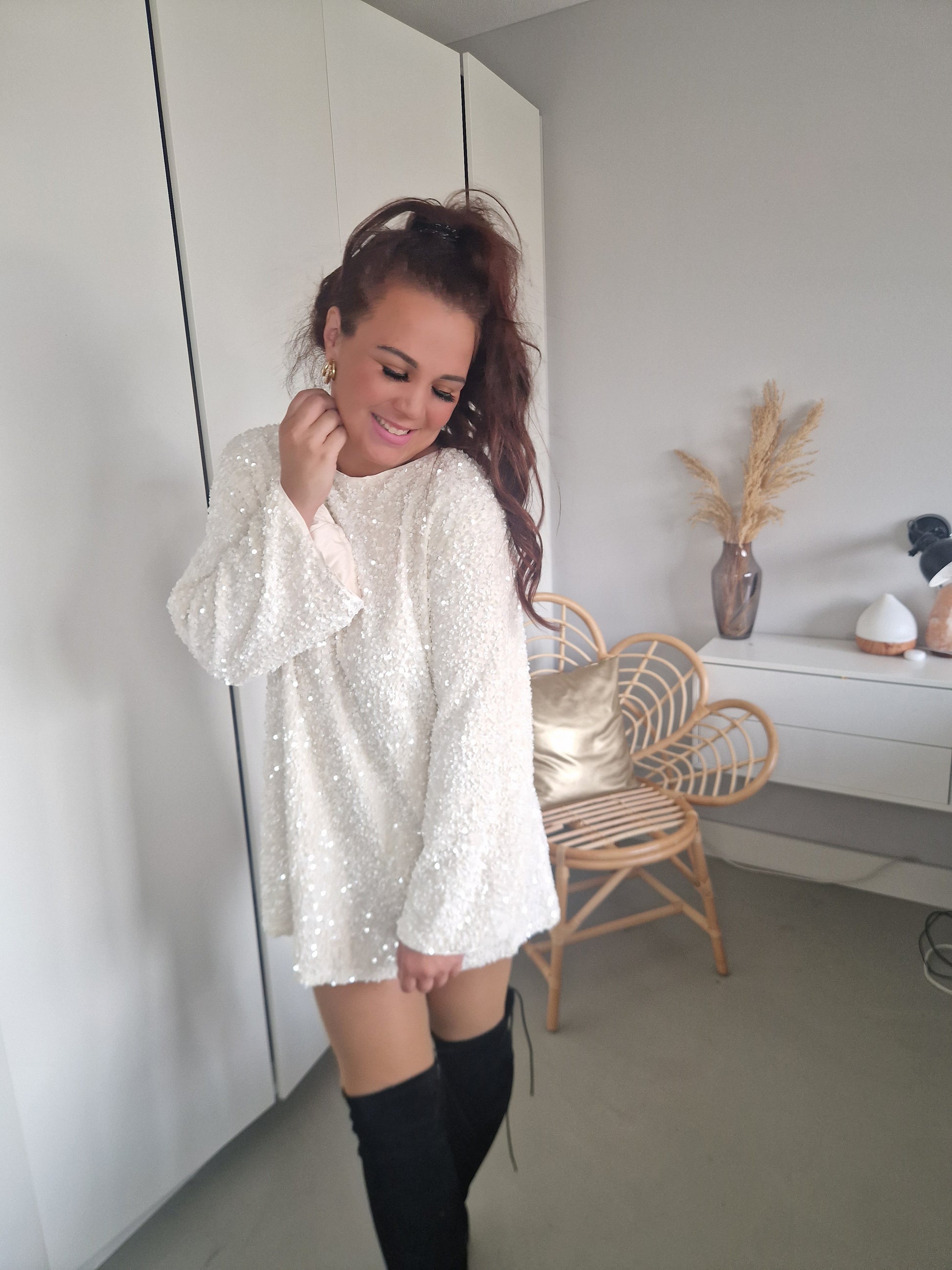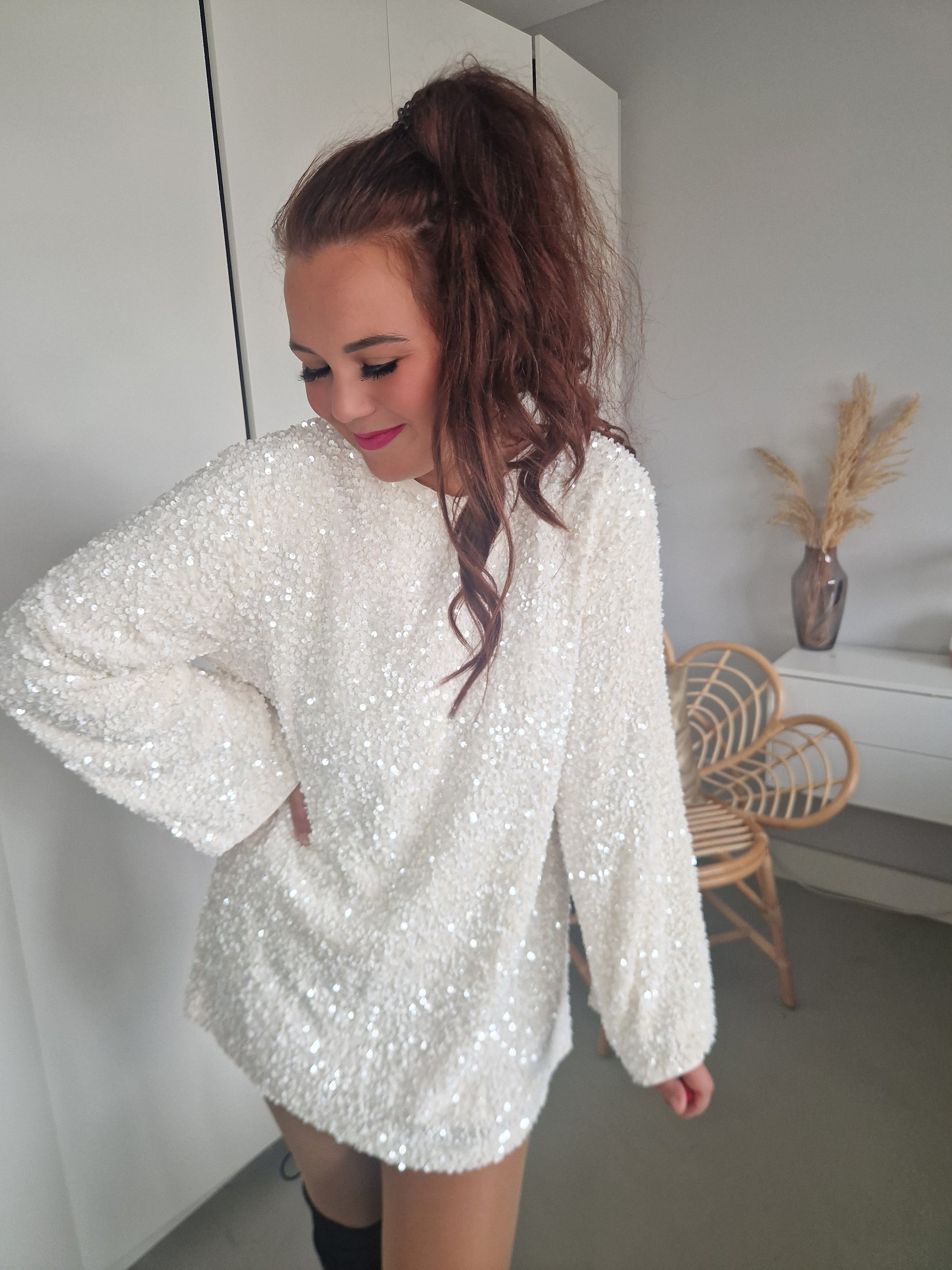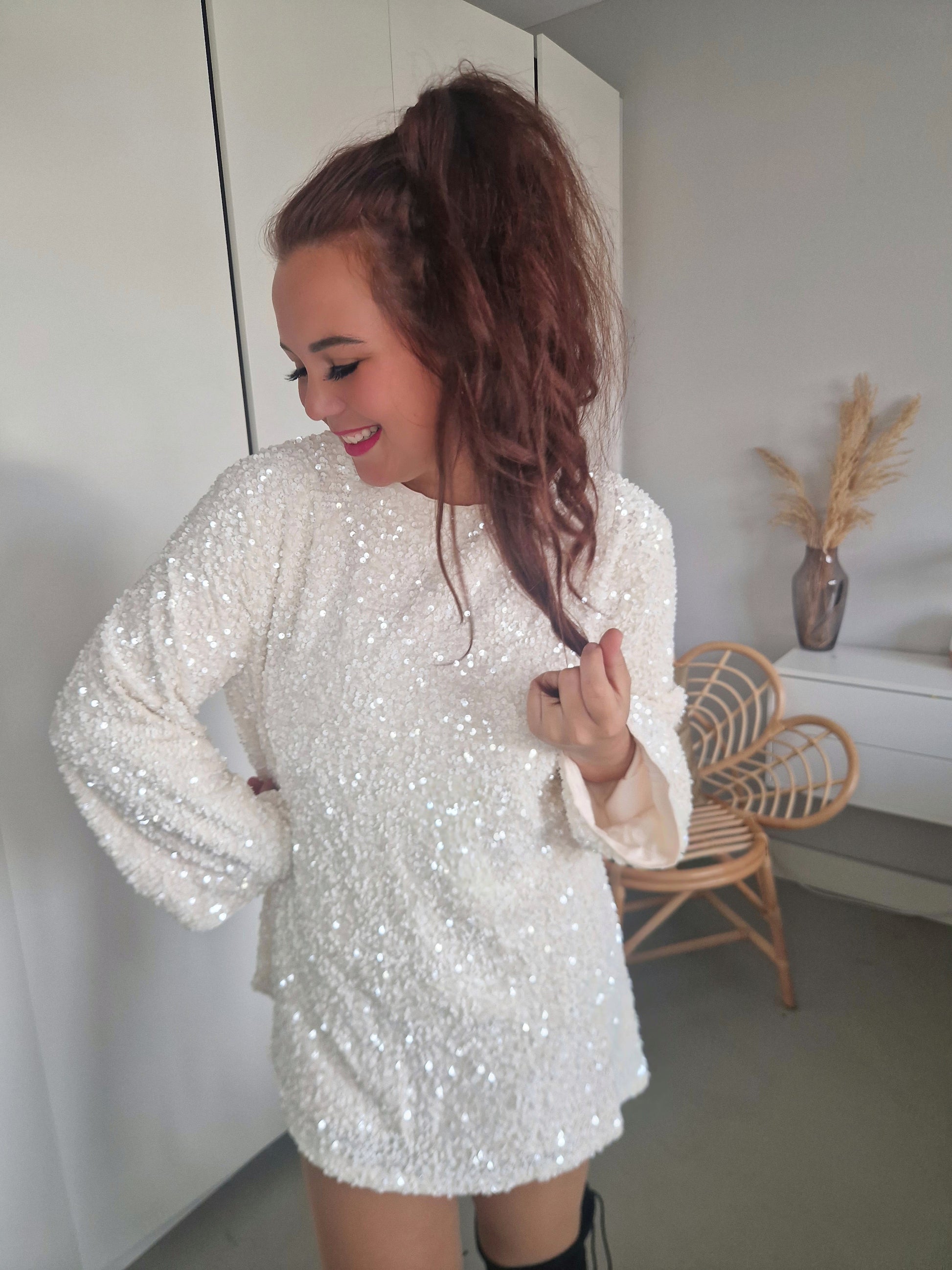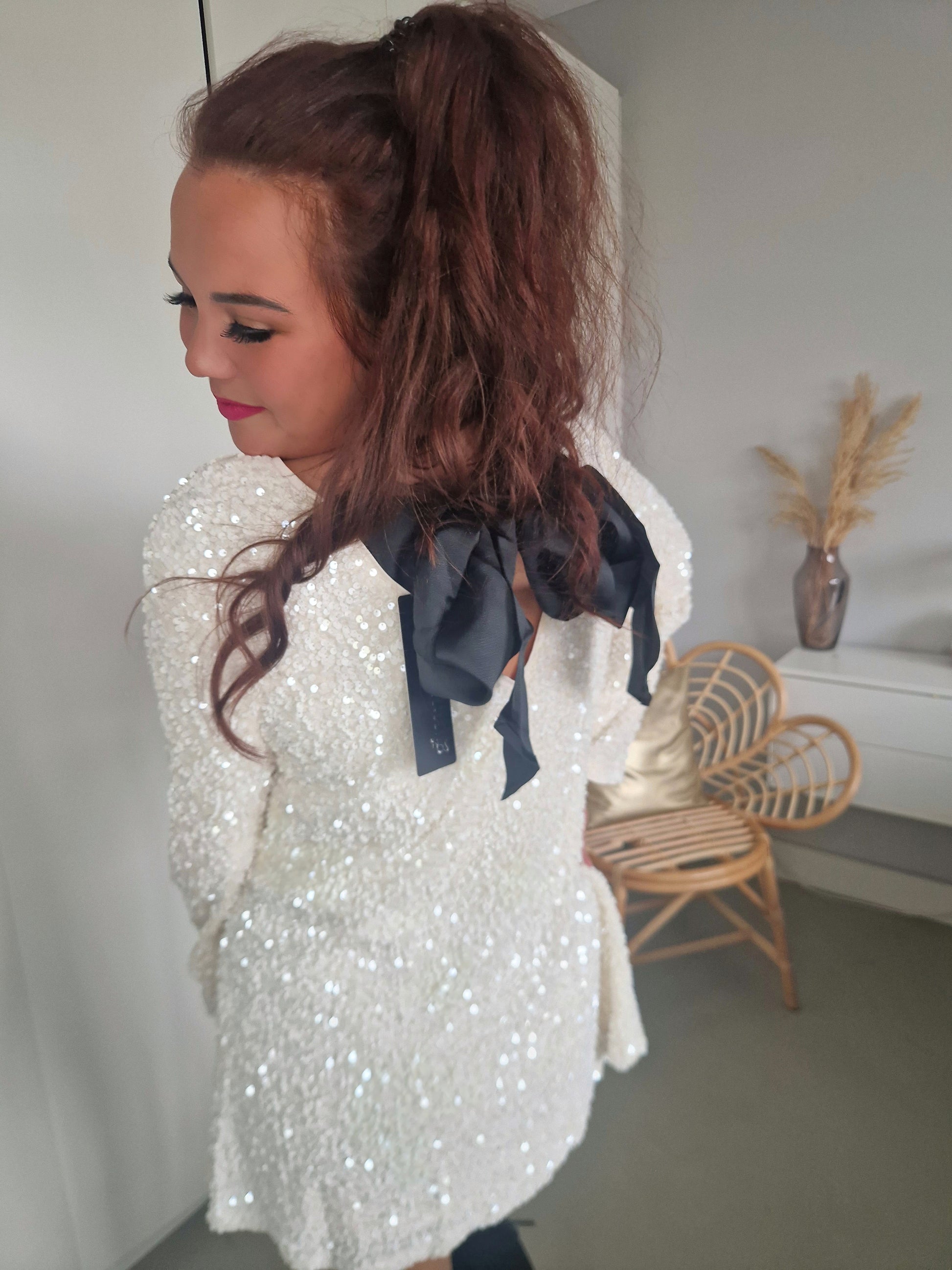 Ik ben zelf 1.75 en vind hem bij mezelf aan de korte kant. Wel leuk met een legging ook! Of een zwart shortje eronder. Leuk voor kortere meiden zo met een panty voor de feestdagen!